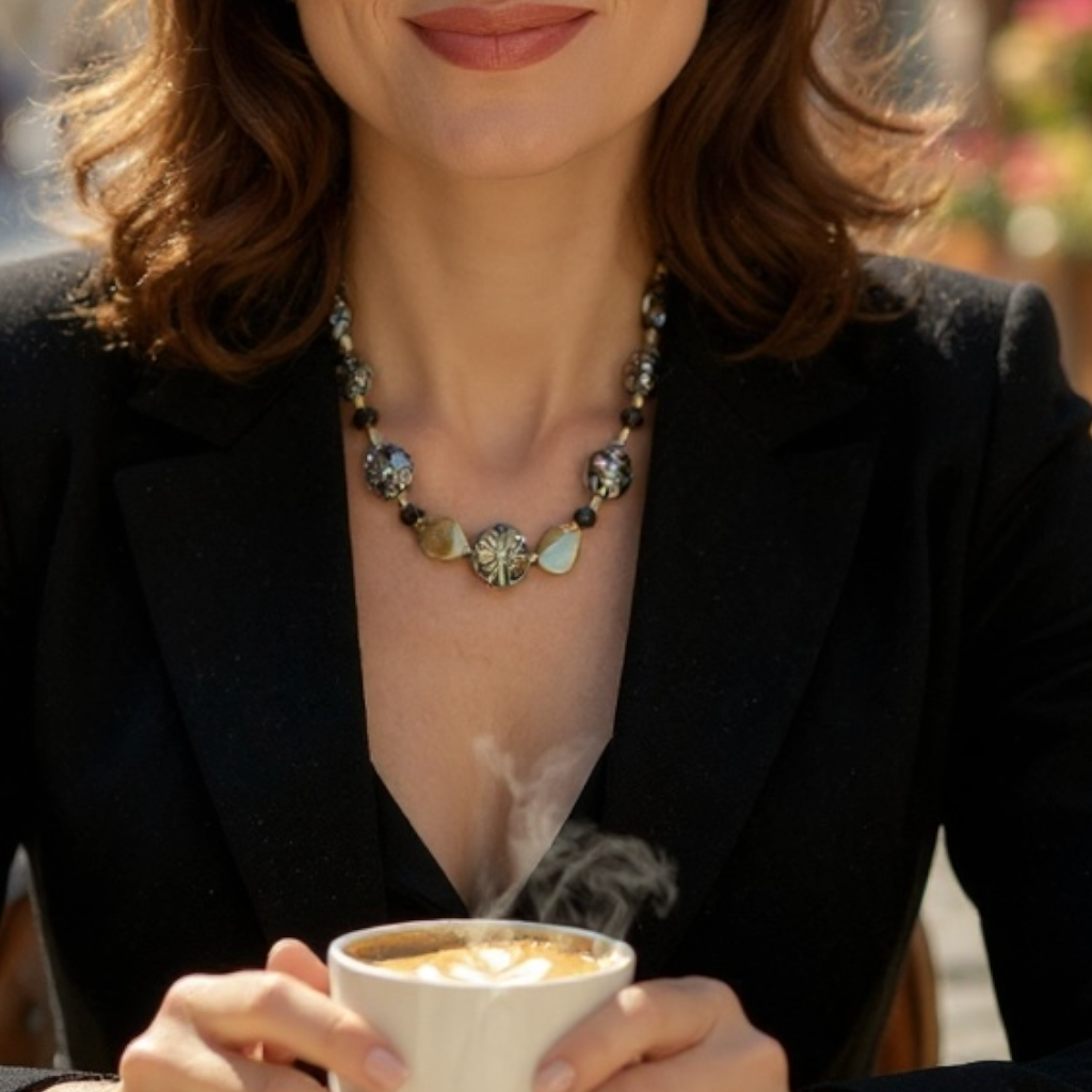 This black and gold beaded necklace combines classic elegance with contemporary style. Crafted with precision, its lustrous black beads contrast strikingly against shimmering gold accents, creating a refined accessory ideal for elevating both formal and casual ensembles. Lightweight and comfortable to wear, this necklace adds a touch of sophistication without overwhelming your look. Perfect for those who appreciate understated luxury with a bold statement.