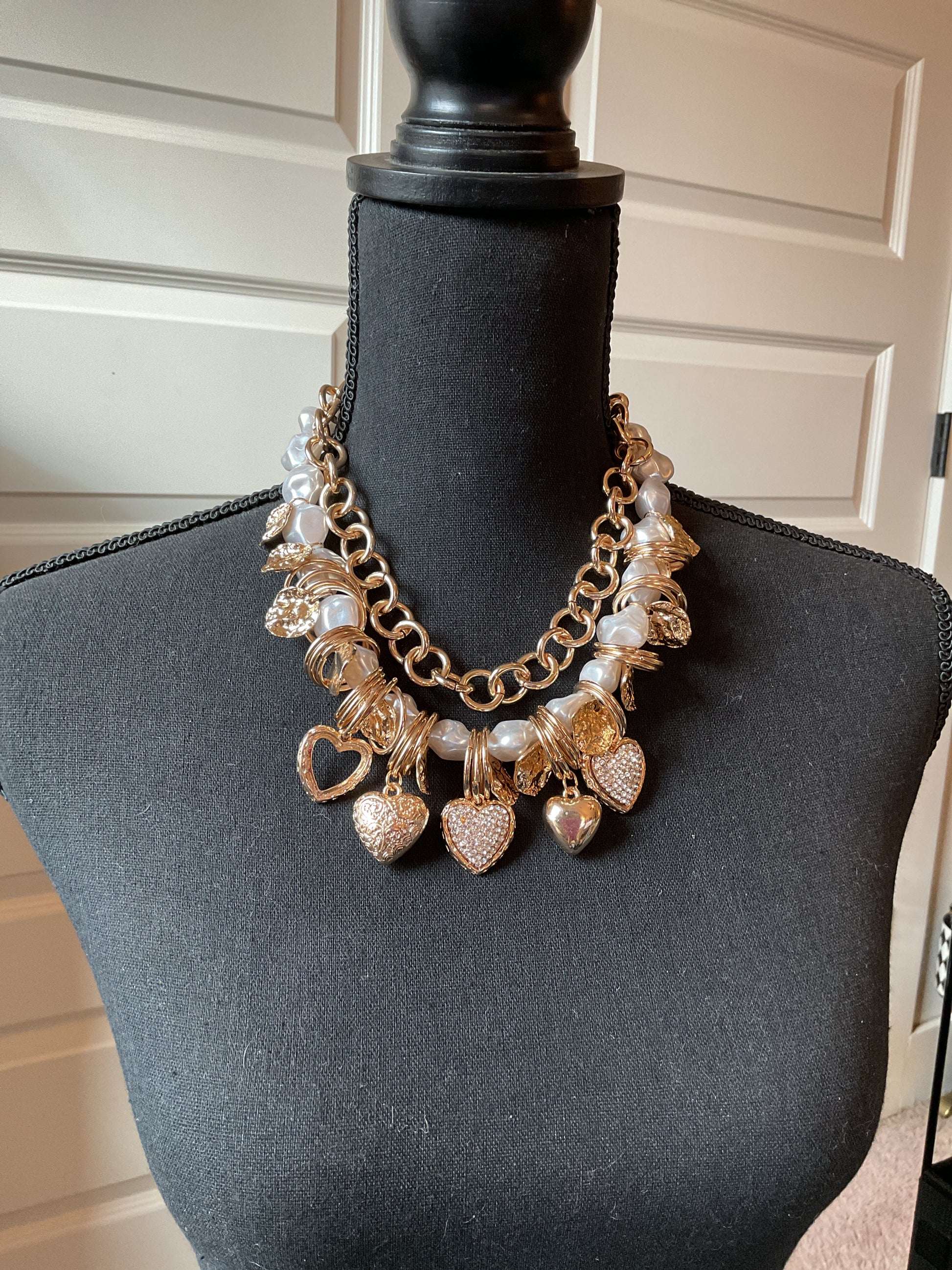 Chunky Gold and Pearl with Hearts Statement Necklace