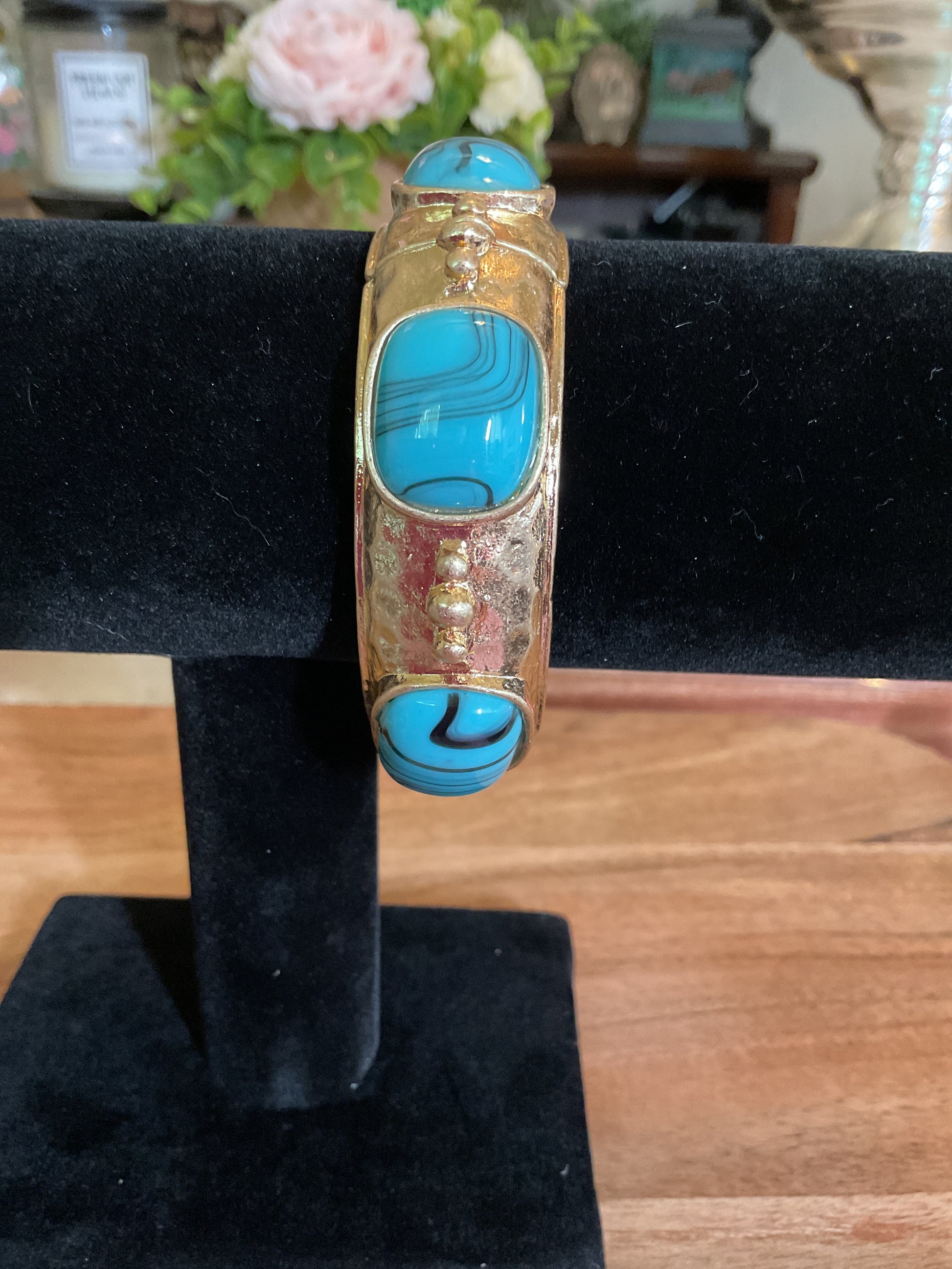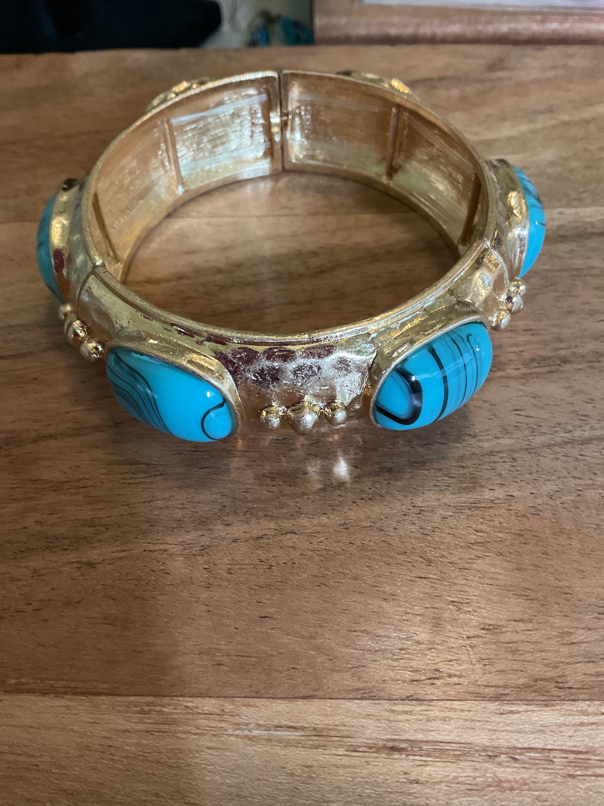 This gold and turquoise stretch bracelet offers a refined blend of timeless elegance and modern comfort. Featuring striking turquoise accents set within a polished gold-tone band, the design is both eye-catching and versatile. The stretch construction allows for easy wear and adaptability, making it an ideal accessory for enhancing both casual and formal looks with expert sophistication.