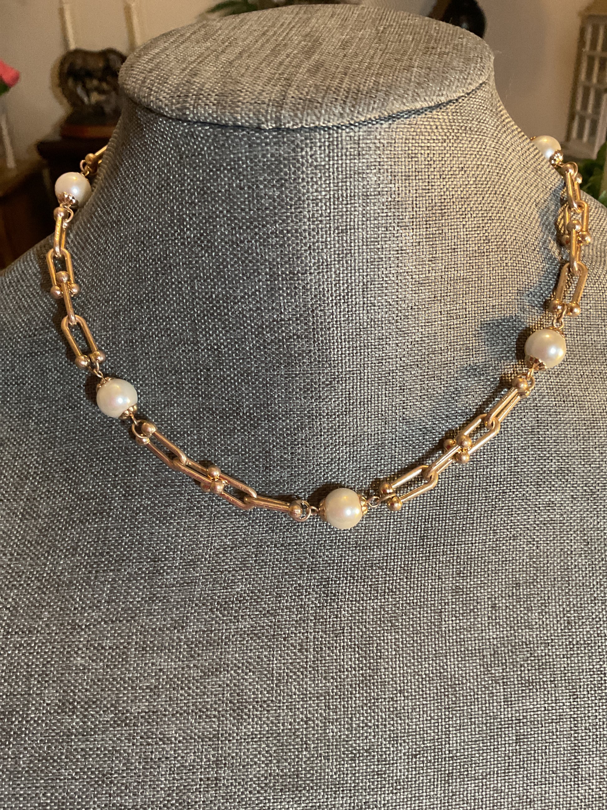 This elegant gold chain, accented with lustrous pearl beads, combines timeless sophistication with modern design. Its durable gold links provide lasting wear, while the pearls add a refined touch ideal for both formal occasions and everyday elegance. Expertly crafted, this piece offers a versatile accessory that enhances any jewelry collection with understated luxury.