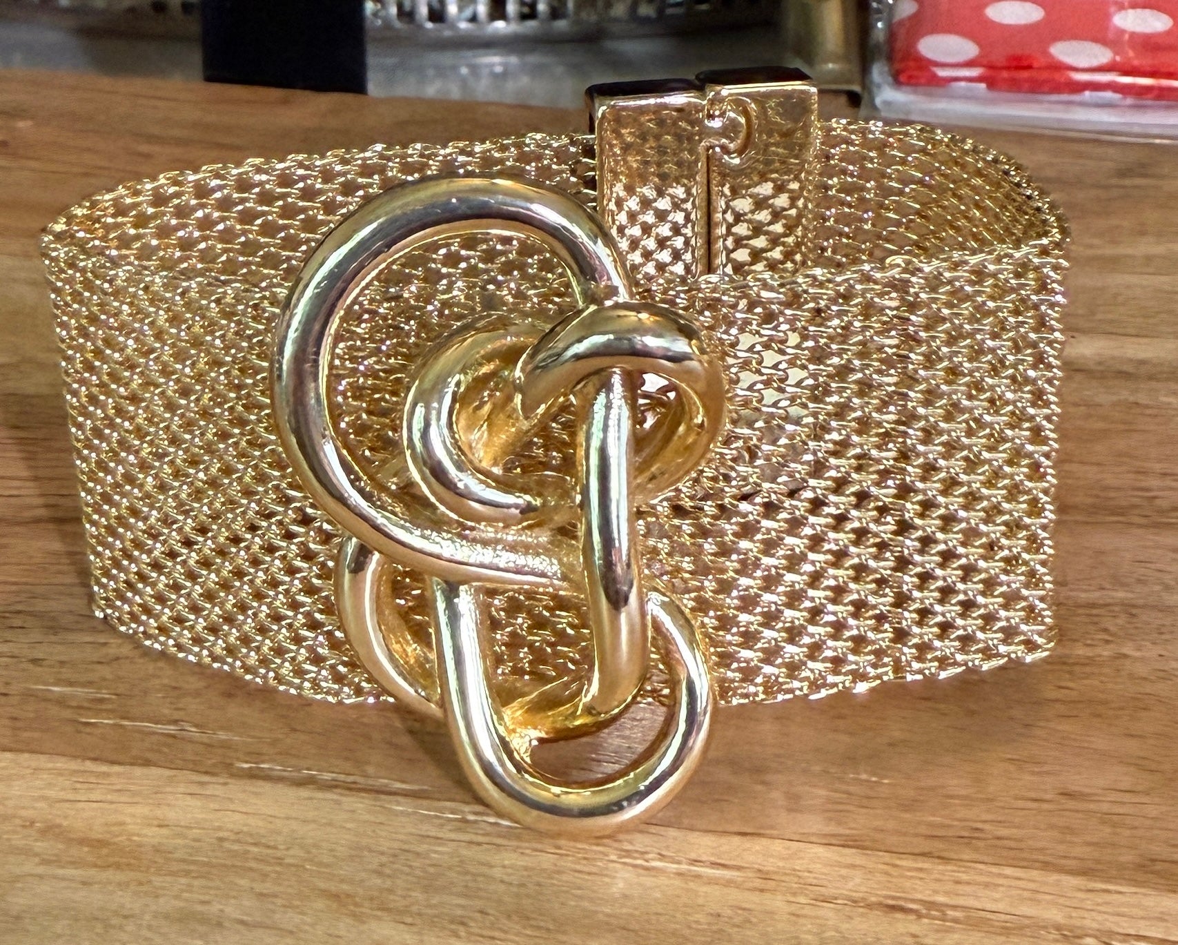 Elevate your accessory collection with this overlap knot metal bracelet, expertly crafted for a sophisticated yet modern look. The interwoven knot design symbolizes unity and strength, while the durable metal construction ensures lasting wear. Perfect for both casual and formal occasions, this bracelet adds a subtle statement of style and refinement to any outfit.