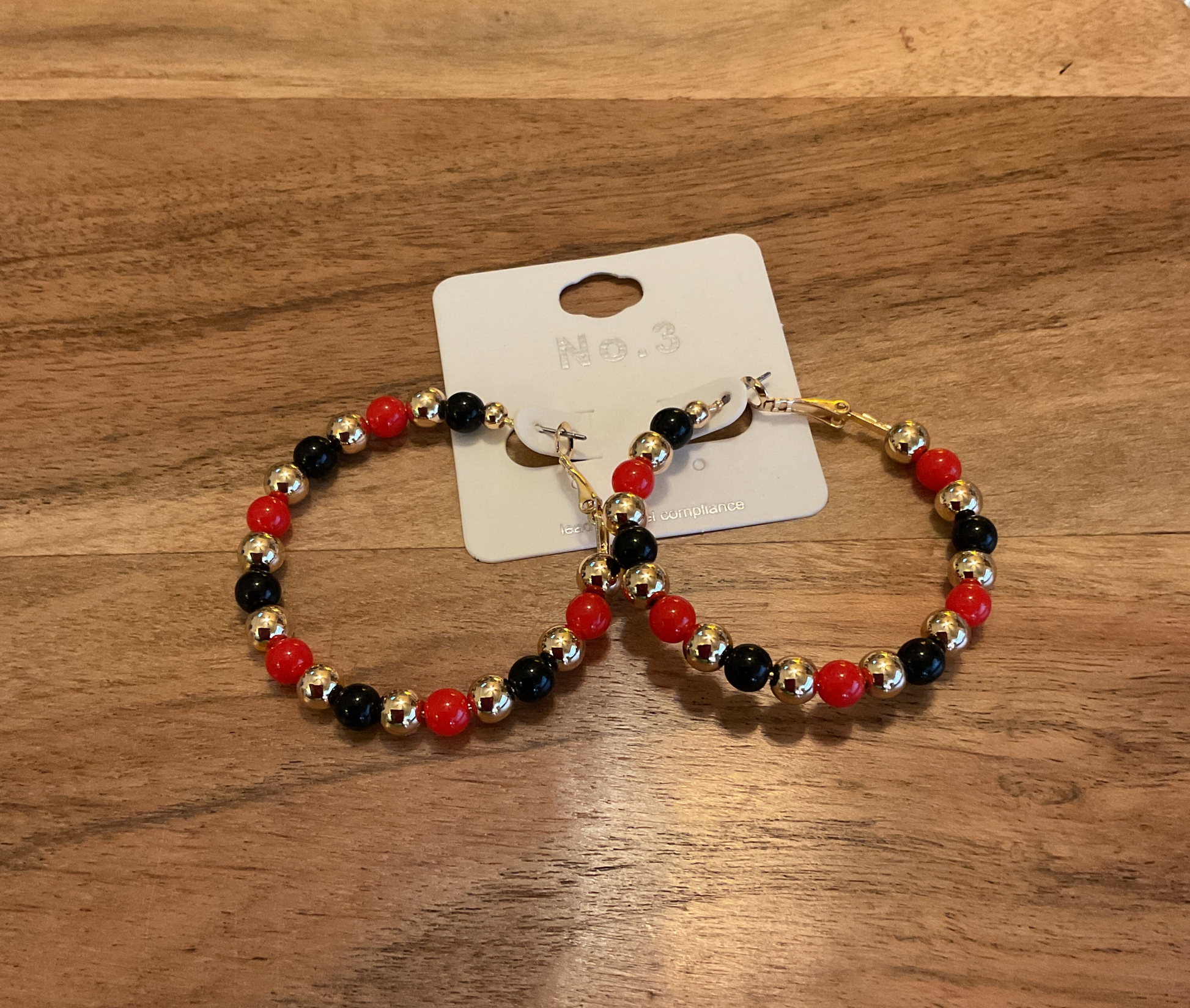 These red and black hoop earrings combine bold color contrast with a classic design, offering a versatile accessory that enhances both casual and formal outfits. Expertly crafted to balance vibrant red tones with sleek black, they provide a striking yet sophisticated statement that complements a variety of styles. Durable and lightweight, these earrings ensure comfortable wear throughout the day. Ideal for those seeking a distinctive touch of color while maintaining elegance.