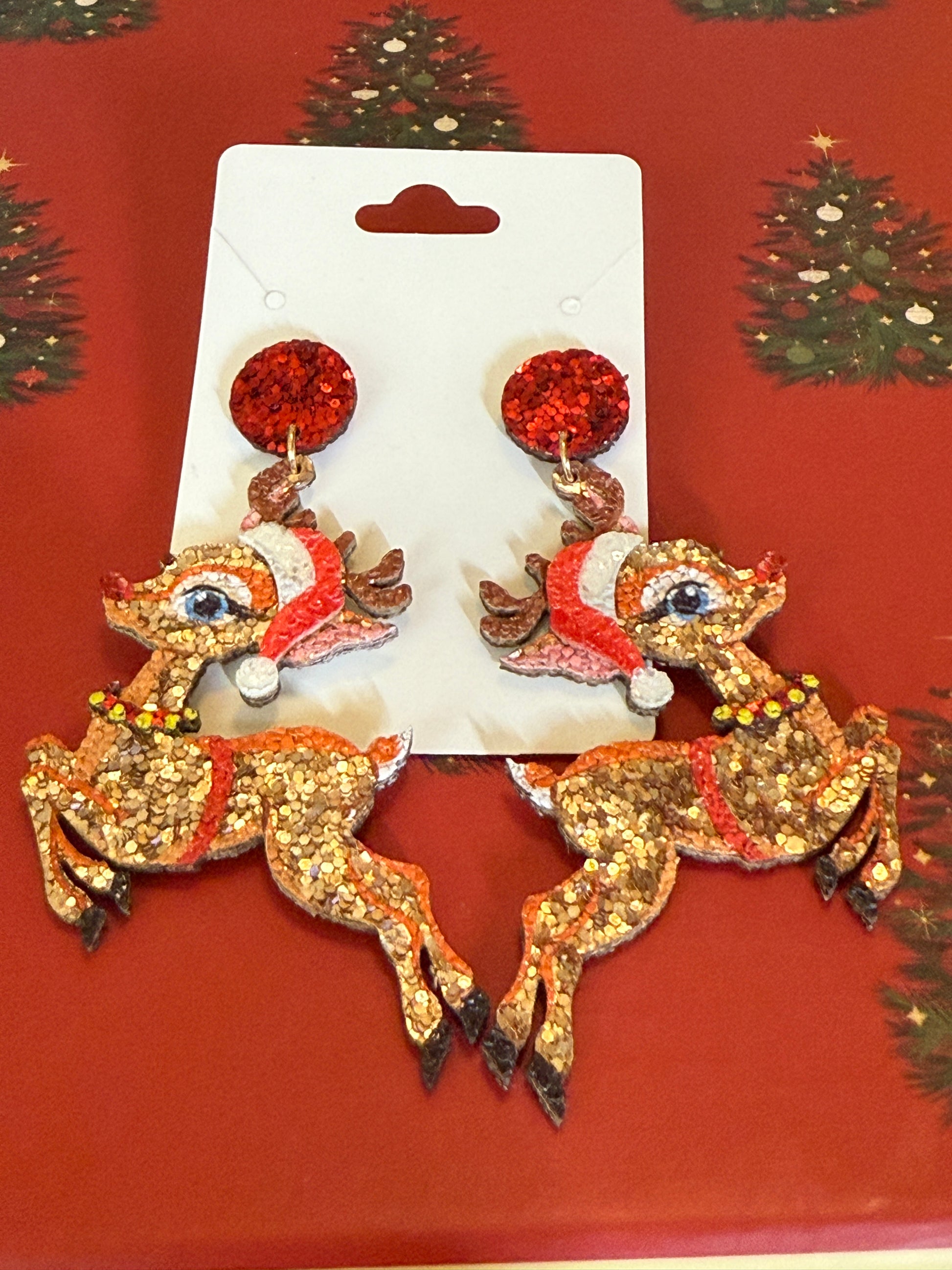 Prance into the season with these adorable Reindeer Dangle earrings! Featuring festive antler details and a playful design, these lightweight danglers bring holiday cheer to any outfit. Perfect for spreading Christmas spirit at parties, gatherings, or everyday celebrations. Whether you're a reindeer enthusiast or just love seasonal flair, these charming earrings are sure to sleigh the style game. Jingle all the way with a pair that captures the magic of the holidays!